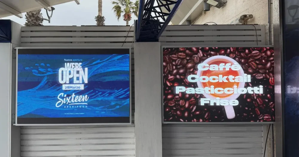 Per questo negozio abbiamo progettato e realizzato insegne LED quadrate da esterno e una verticale a forma rettangolare, pensate per valorizzare l’ingresso del punto vendita e dare una chiara comunicazione ai passanti.