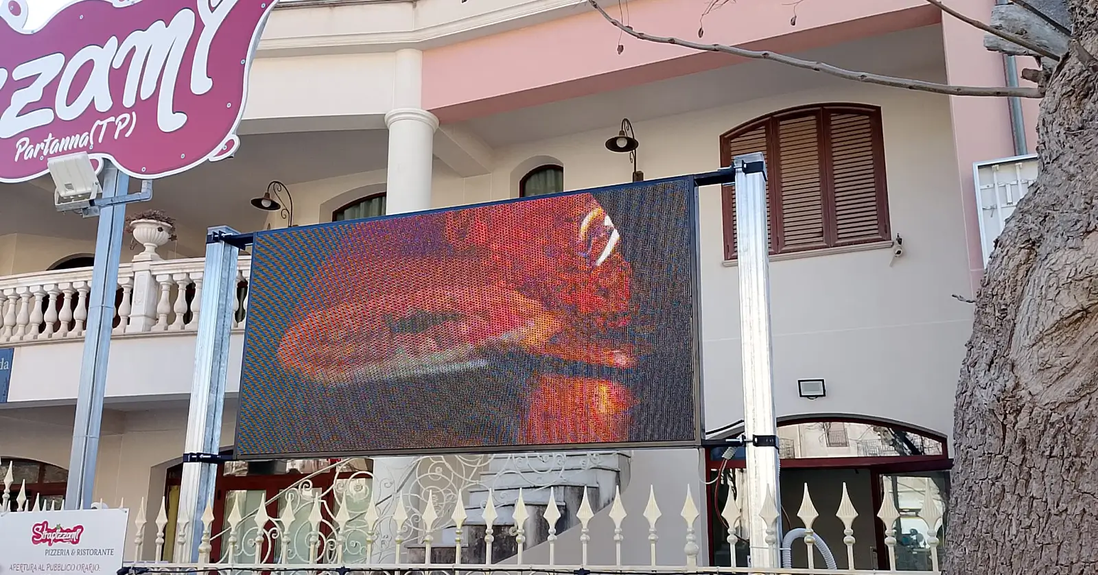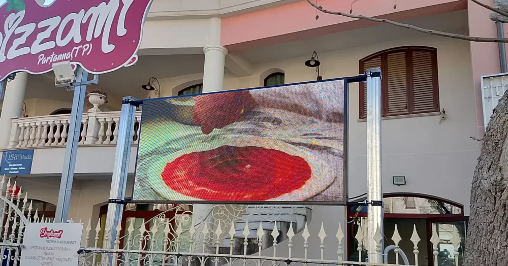 Per questa pizzeria abbiamo progettato e realizzato un’insegna LED rettangolare da esterno, pensata per valorizzare l’ingresso al punto vendita e dare una chiara comunicazione ai passanti.